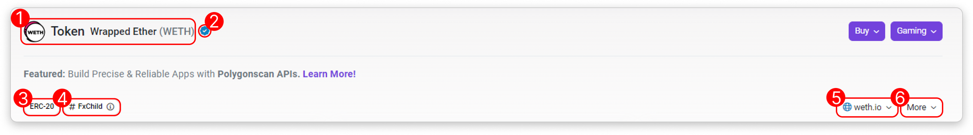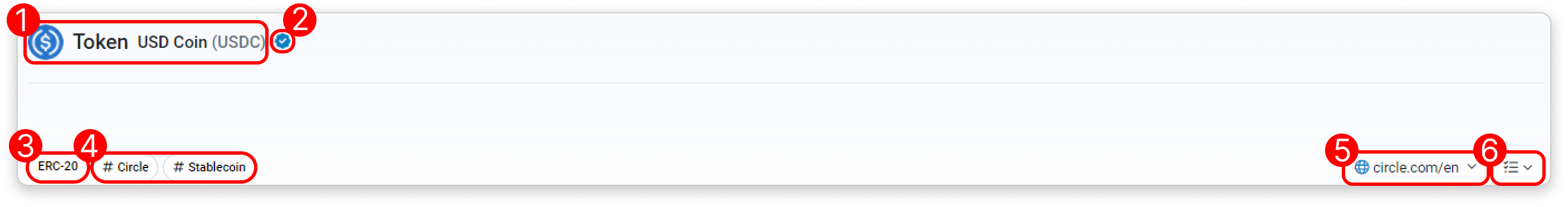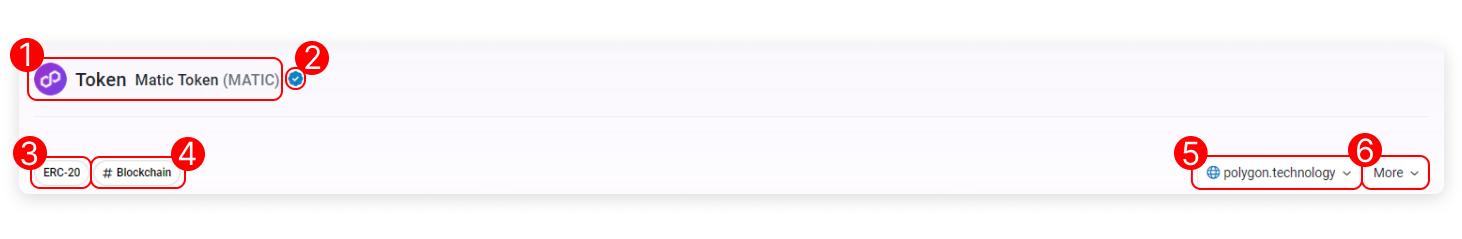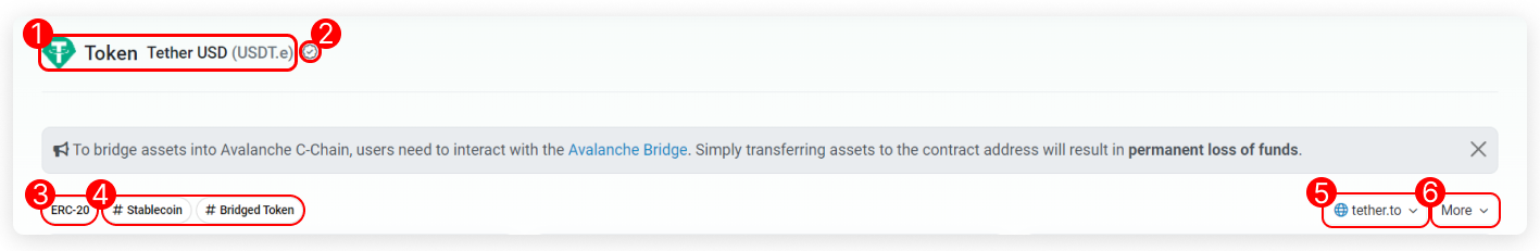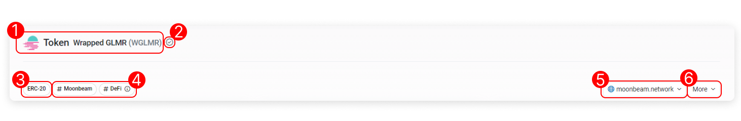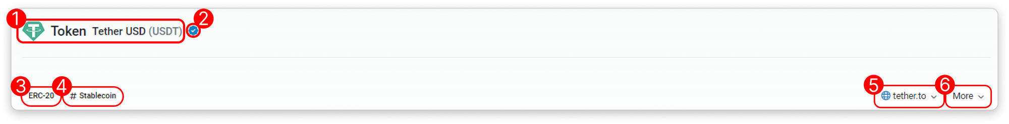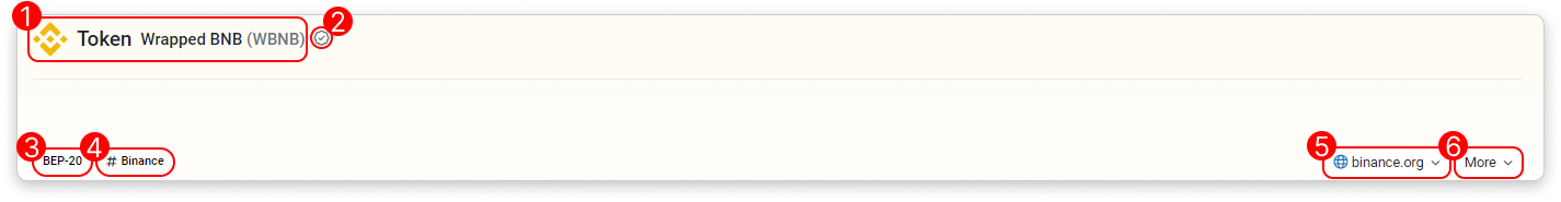 - Token: This is where the token logo and name are shown. The name is pulled from the token's source code while the logo is provided by the token's creator. If the creator did not submit a Token Update Request for the token, then the token's actual logo will not be displayed.