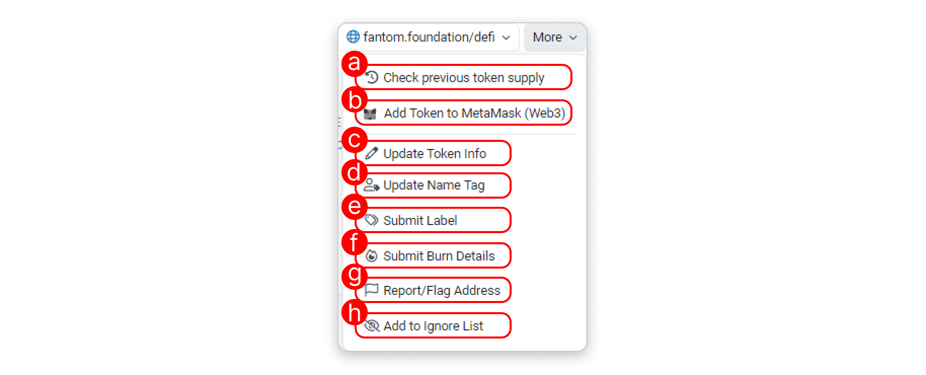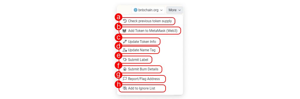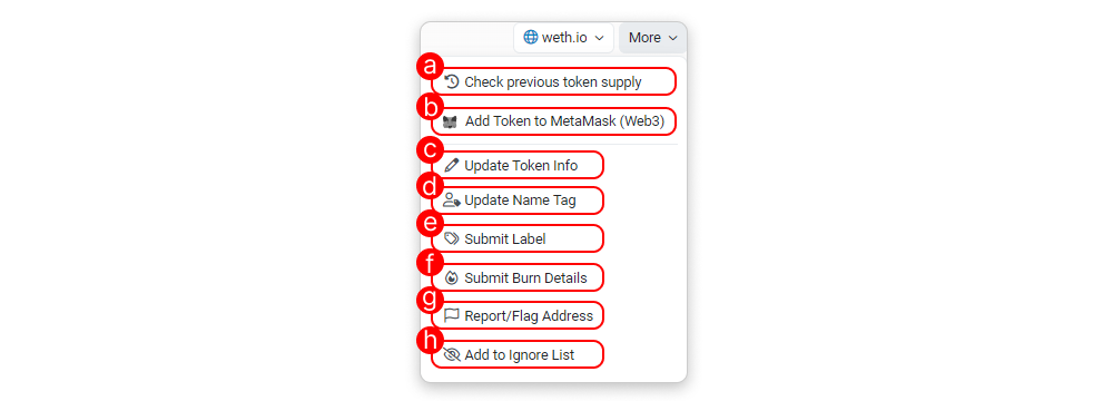 h. Add to Ignore List: Click here to hide this token from showing up in token holding lists across the website. (Note: This only affects the individual user's perspective and the option will only appear when you are logged in)
