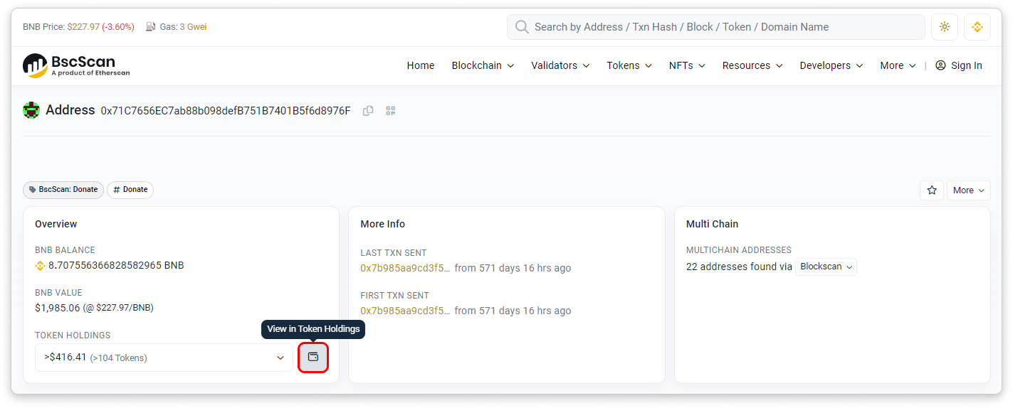Exploring the Token Holdings Page