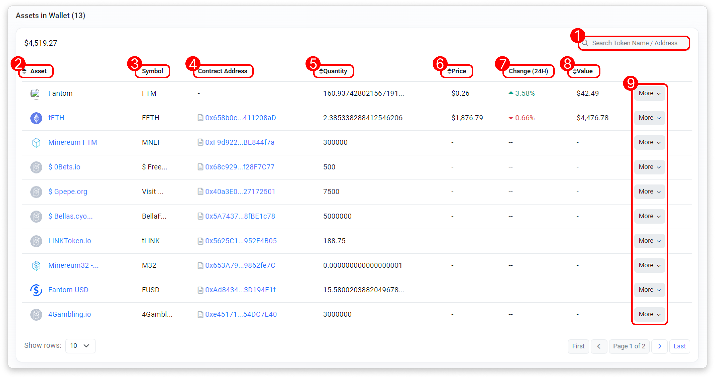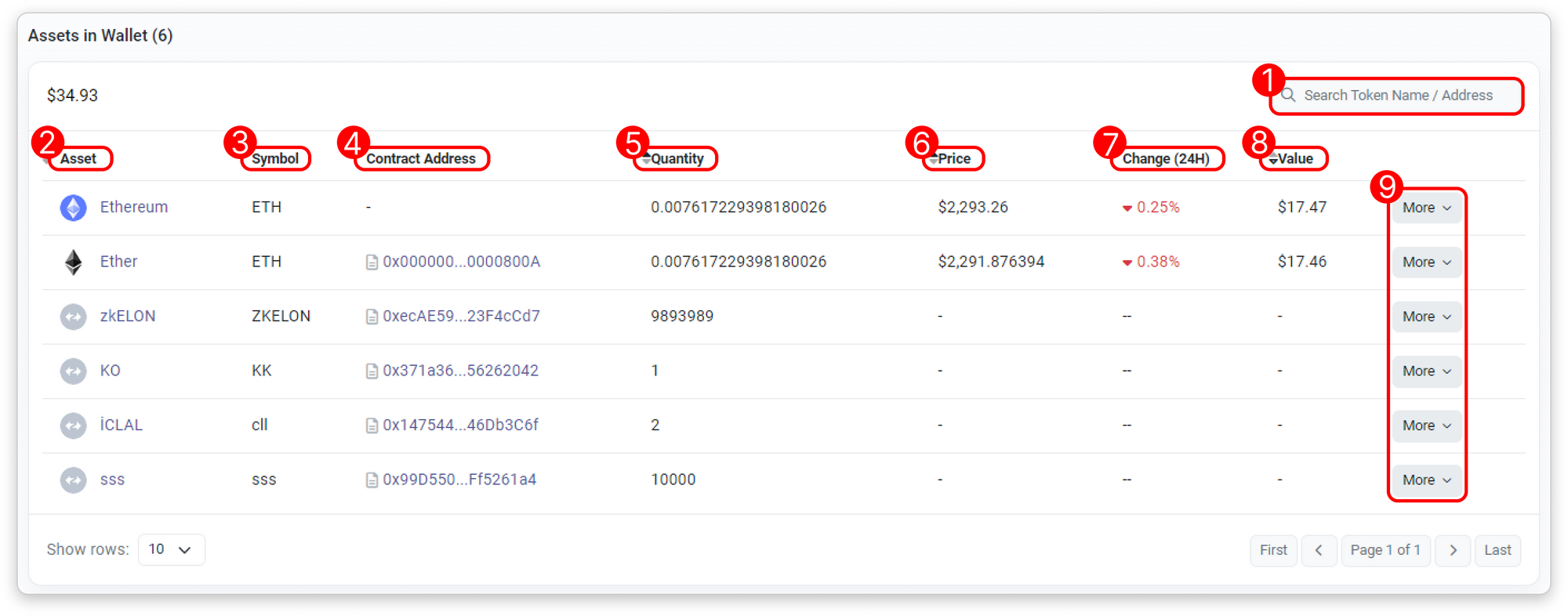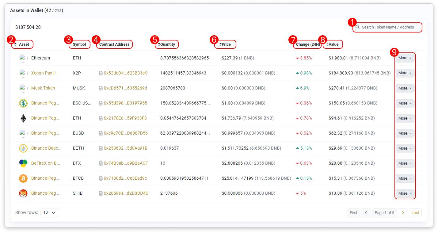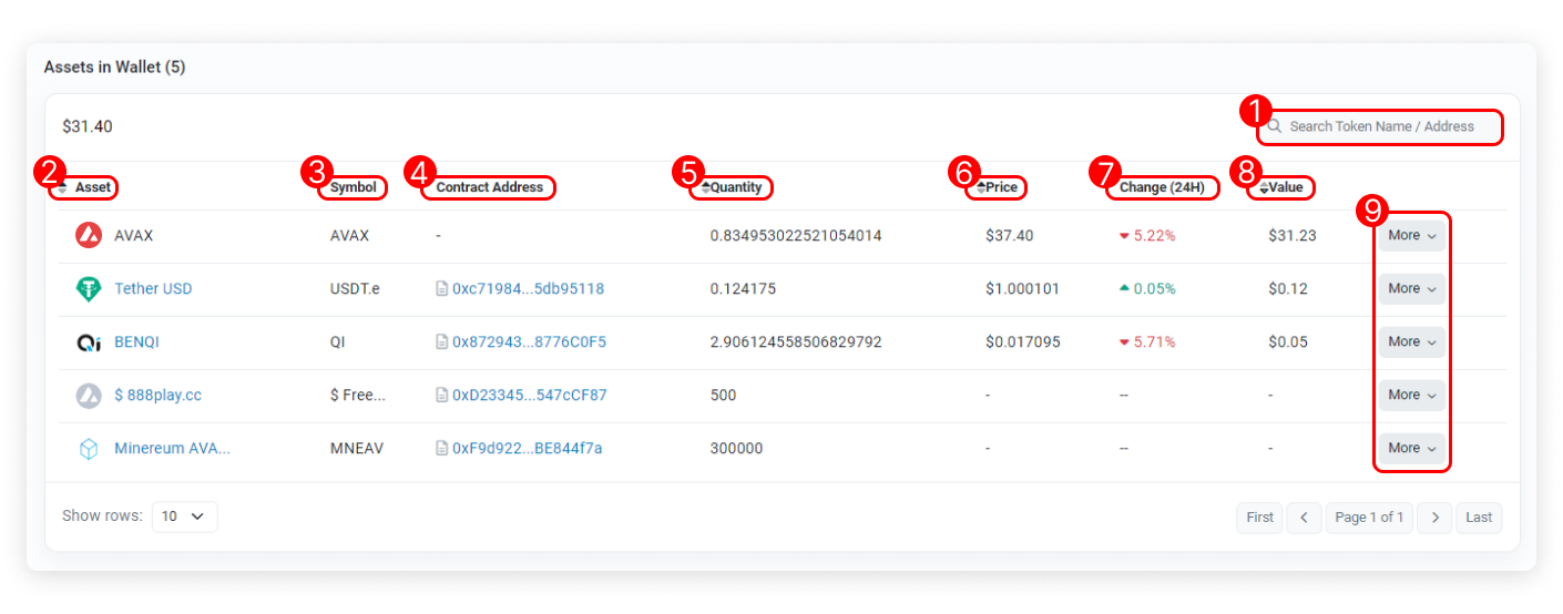 - Token Name/Address Filter: Filter the list by token name or address.