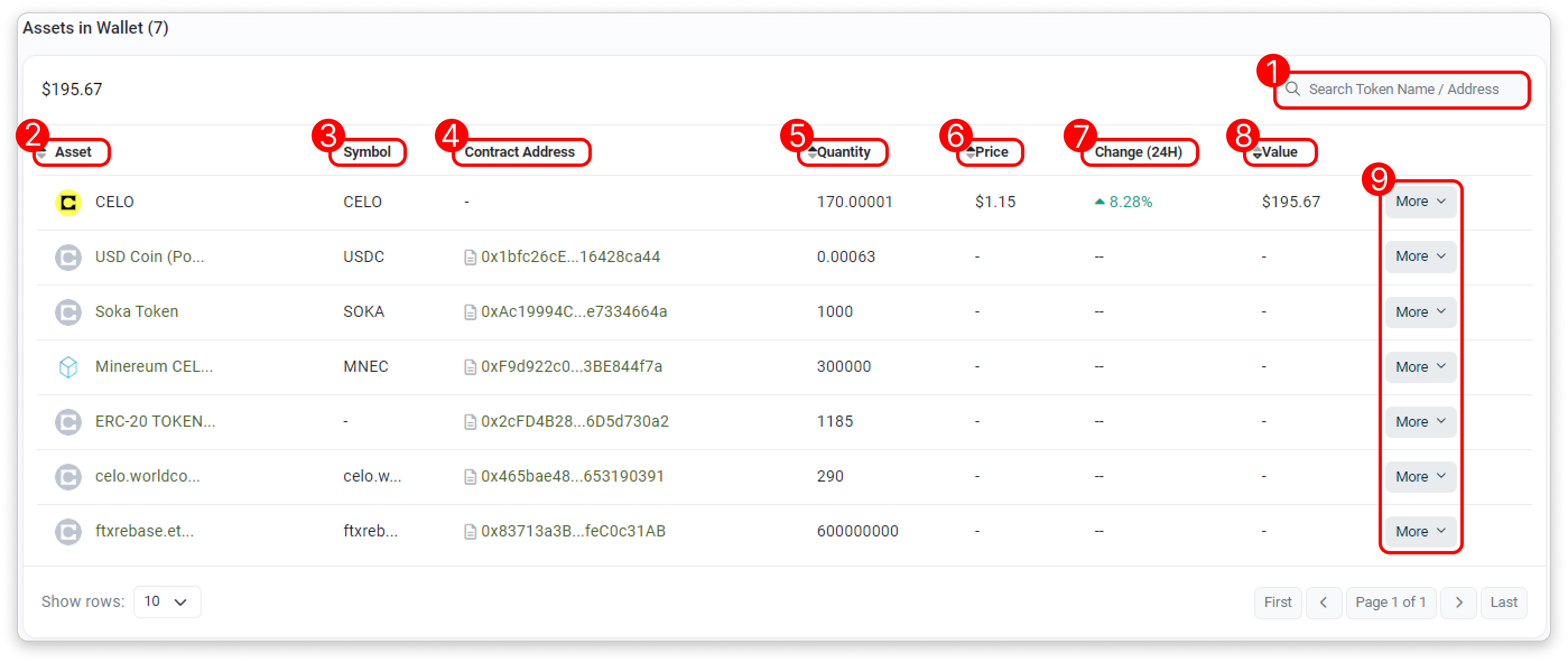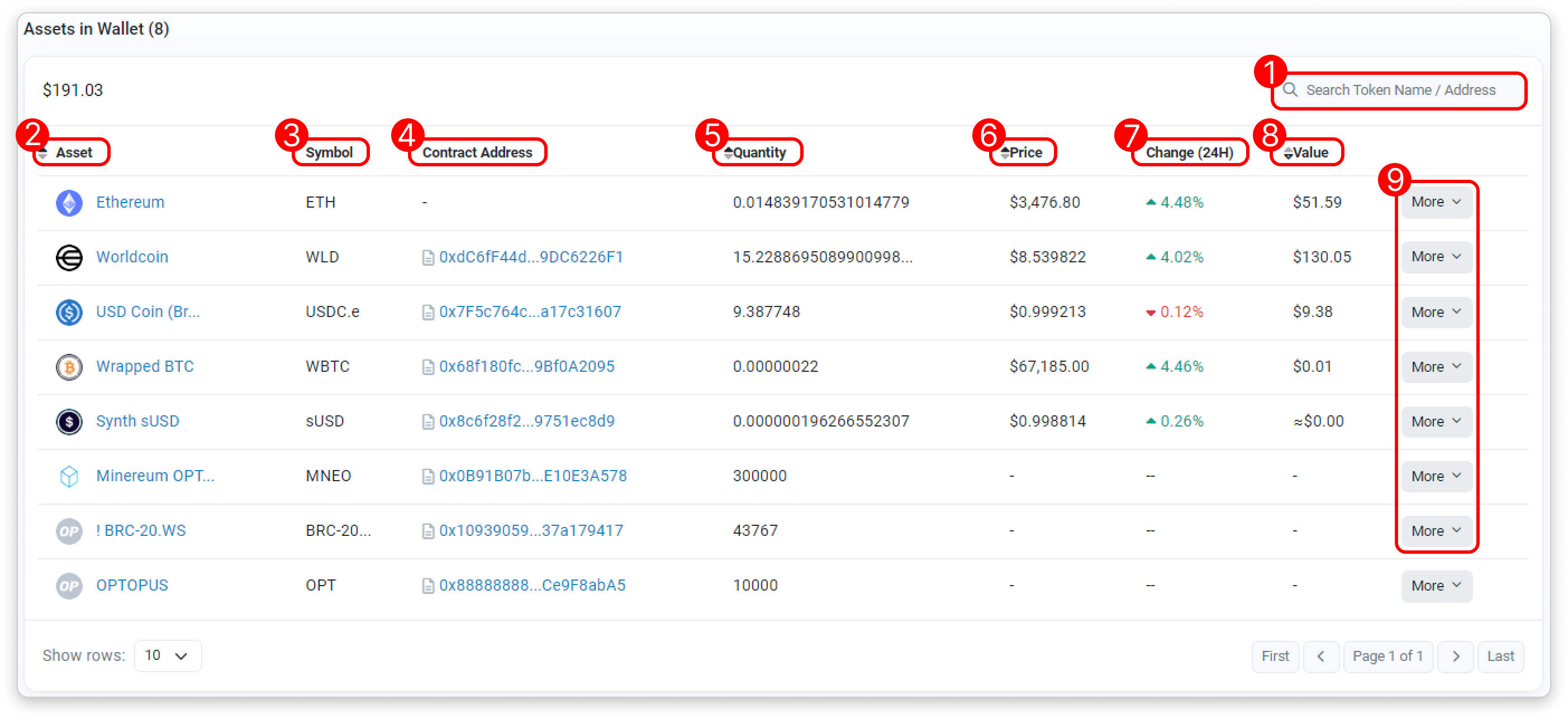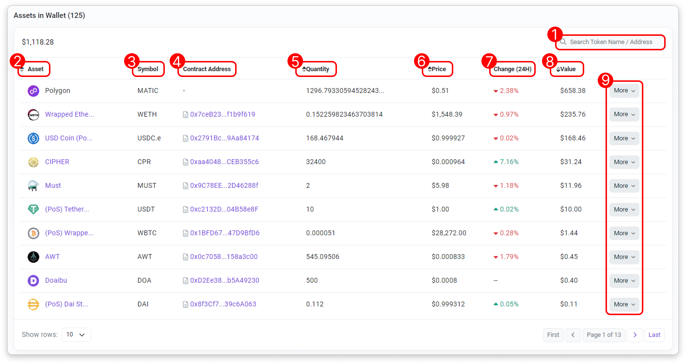 - Token Name/Address Filter: Filter the list by token name or address.