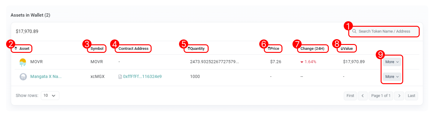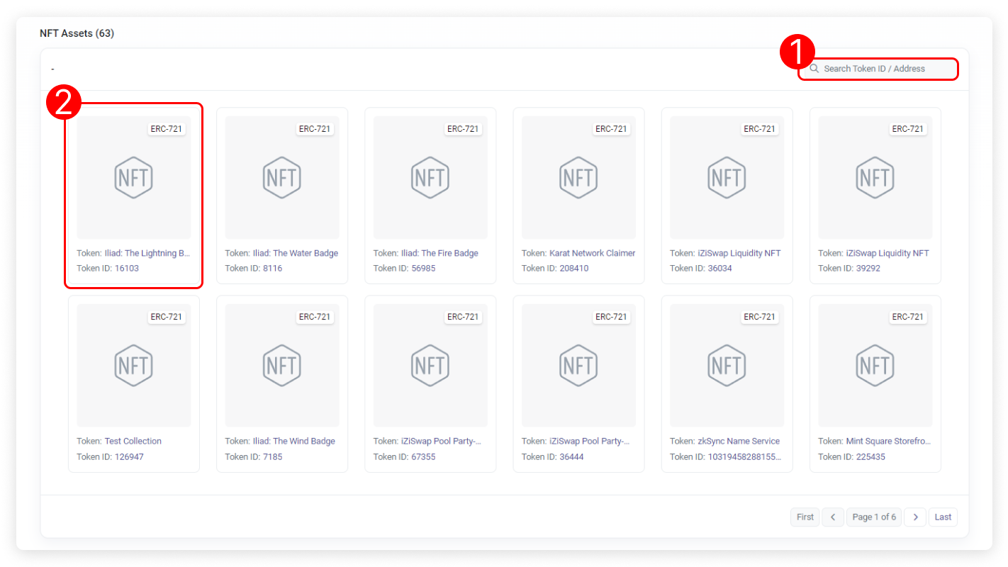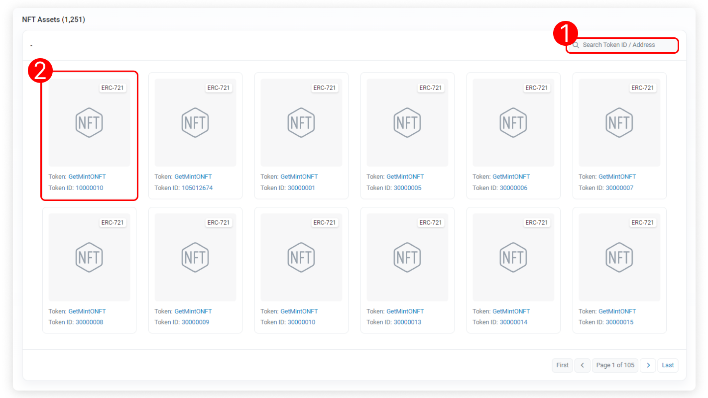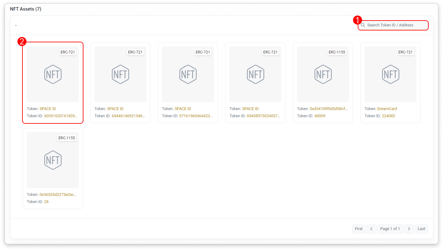 - Token ID/Address Filter: Filter list by token name or address.