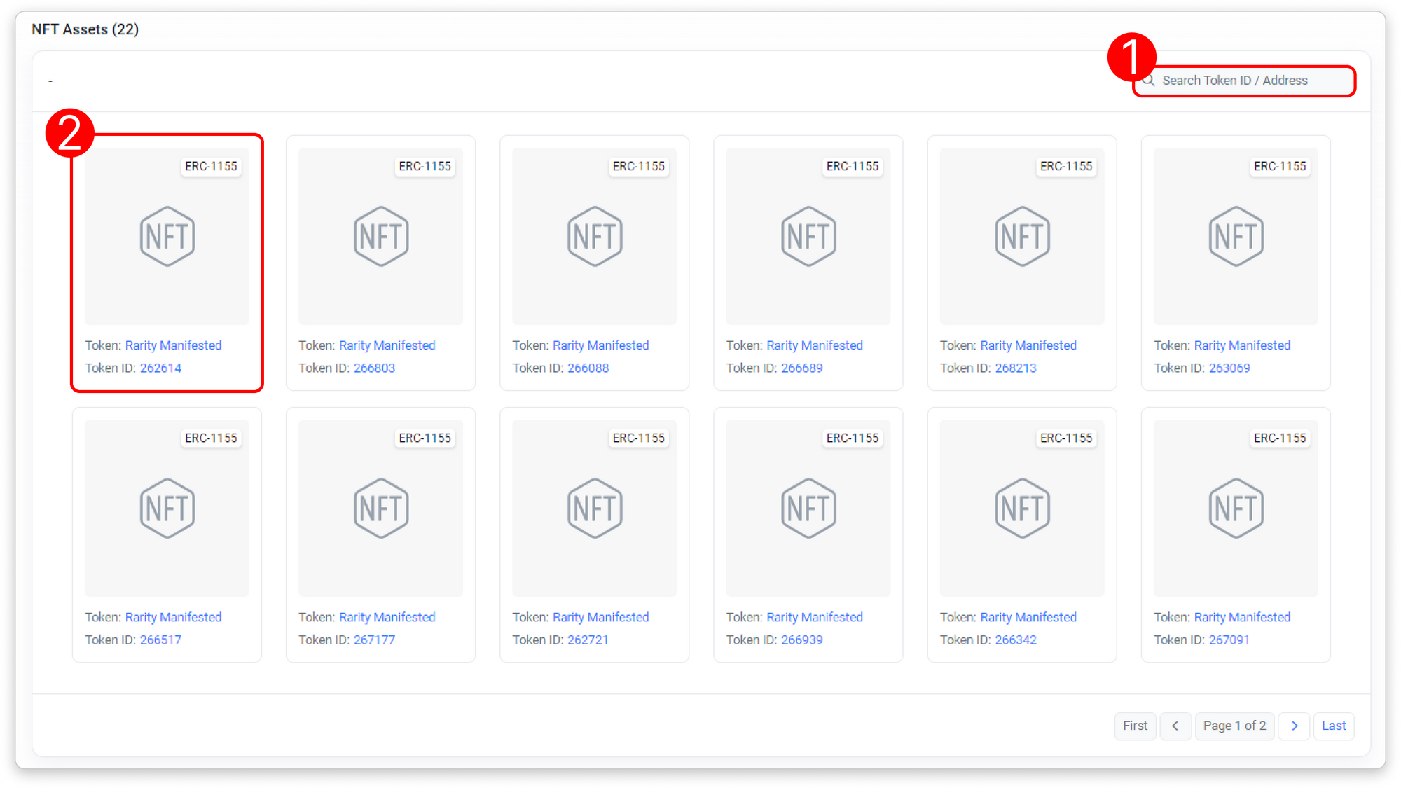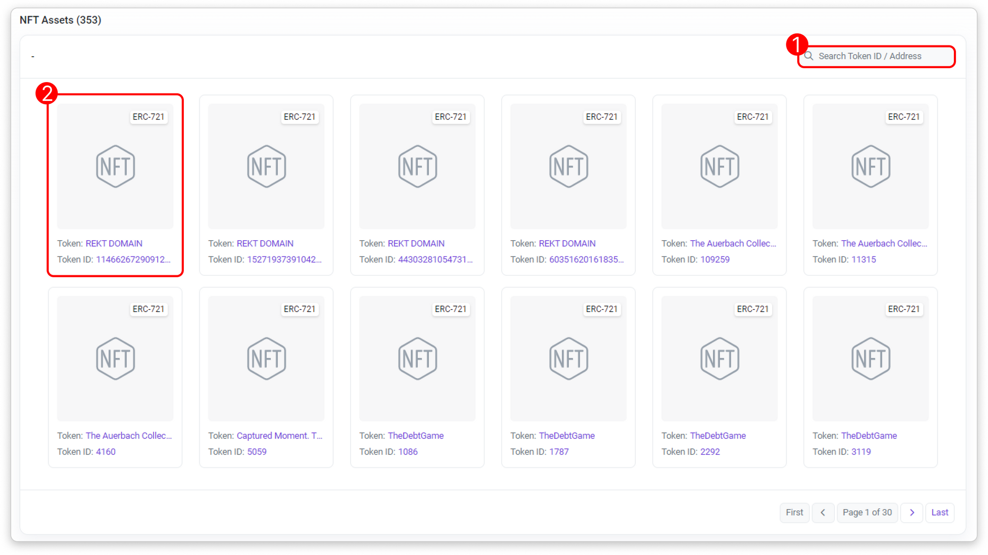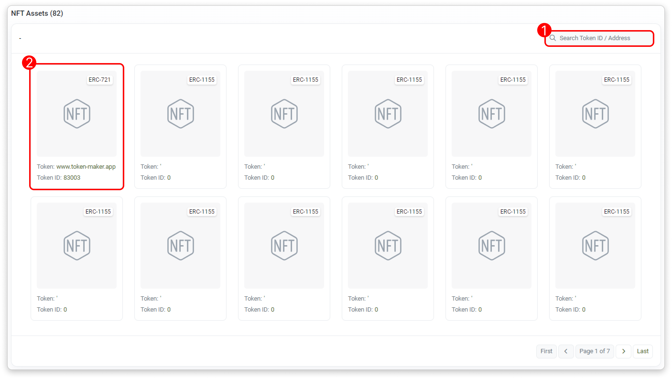 - Token ID/Address Filter: Filter list by token name or address.