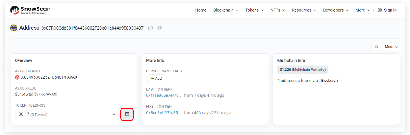 - Additional Tools: Quick access for tools related to this token including adding it to Token Ignore List, checking previous token balances and adding the token to MetaMask.